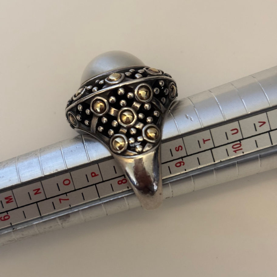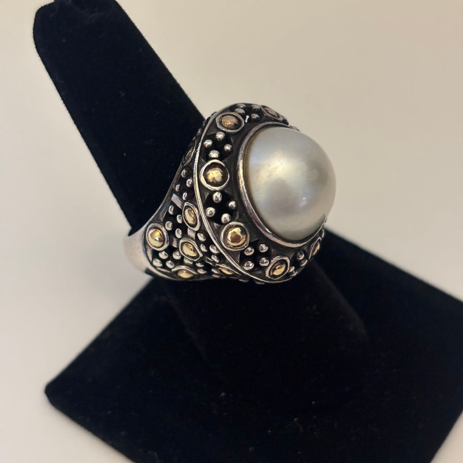 John Hardy Jaisalmer Dot 18K Yellow Gold, Sterling, Mabe Pearl Ring Size 8-8.25